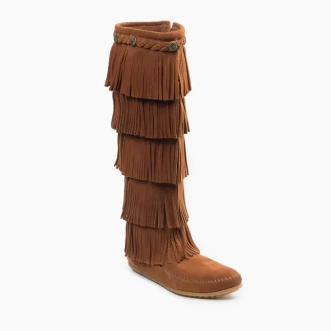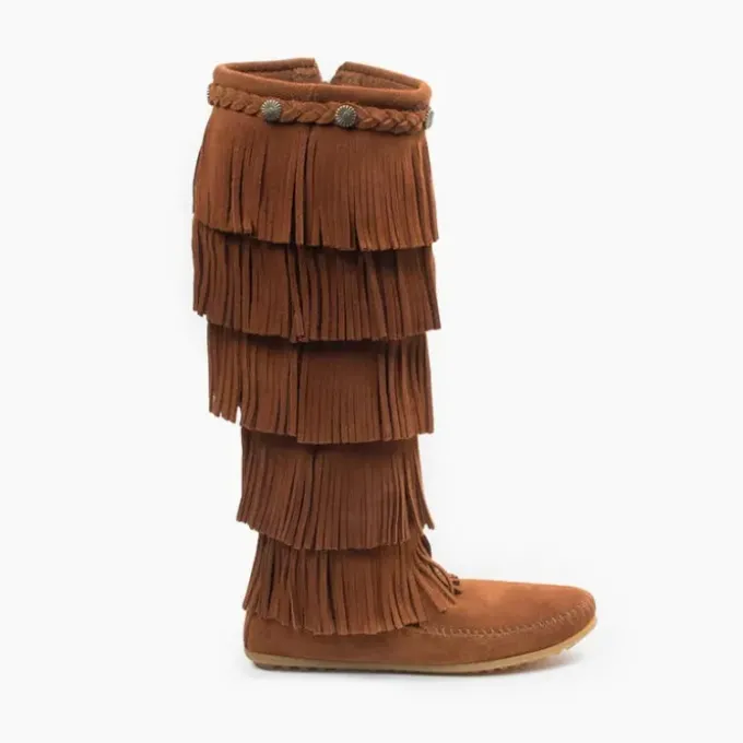 Take things to the next level with five layers of fringe that simply dance while you step. These boots are our fringy-est. Handmade from high-quality suede, these women’s boots are buttery soft. Subtle decorative braids and antique-metal conchos surround the tops of the fringe boots. They’re the perfect pop of boho flair for any basic ensemble, perfect for festivals or any adventure.