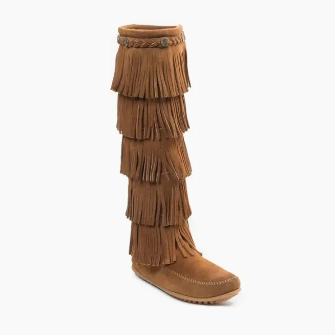 Take things to the next level with five layers of fringe that simply dance while you step. These boots are our fringy-est. Handmade from high-quality suede, these women’s boots are buttery soft. Subtle decorative braids and antique-metal conchos surround the tops of the fringe boots. They’re the perfect pop of boho flair for any basic ensemble, perfect for festivals or any adventure.