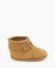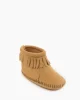 Your little darling will adore these sweet fringe infant moccasins. Soft suede leather keeps little toes warm, while the hook and loop closure promises easy on and off and a padded insole provides comfort as your little one learns to walk.