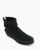 Zip up one of our most popular shoes for women first released in 1963. These trendy suede boots feature a clean and sleek silhouette with just enough of our famous fringe around the ankle to add a little pizzazz to their simple design. Wear these ankle boots with your favorite leggings or skinny jeans, just like the celebrities and trendsetters who adore this carefree and comfy style.