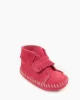 The super soft suede and fully padded insole are so comfortable that your child will never want to take them off. When they finally do come off, the Velcro® strap will make it ultra-easy. The durable soft suede sole protects little toes while the front strap holds the foot for a perfect stay-on fit.