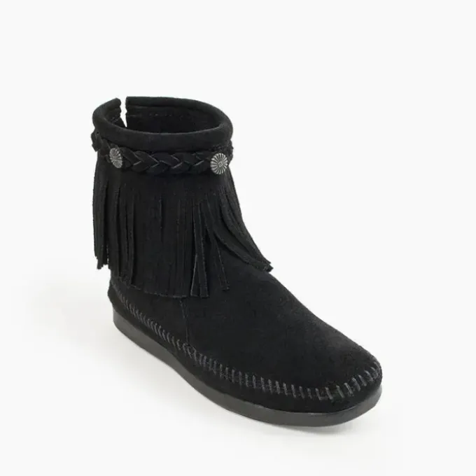 Zip up some of the most versatile boots around.You can wear these ankle boots everywhere and with everything-from shorts, to skirts to basic jeans. The unique square-toe sole, long suede fringe, subtle decorative braid and metal conchos around the ankles make these women’s boots stand apart from the rest. Plus, they’re available in a variety of neutral colors to match just about every style in your closet.