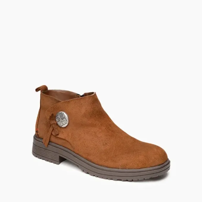 Featuring a chic low heel, suede bows, and a Minookamii sole pattern designed by White Earth Nation Ojibwe artist Hannah Standstrong, these beautiful boots can be styled up or down easily with every outfit. Complete with water-resistant suede, statement decorative buttons, and a side zipper for easy on/off, you’ll be grabbing these boots again and again.