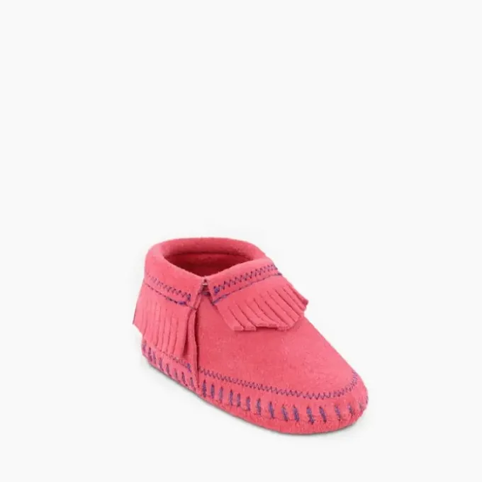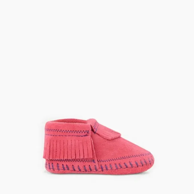 From park to play date, colorfully coordinate your Mini-me with a new suede style. This baby moccasin features a soft suede upper and sole with elasticized opening for easy on and off.