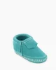 From park to play date, colorfully coordinate your Mini-me with a new suede style. This baby moccasin features a soft suede upper and sole with elasticized opening for easy on and off.