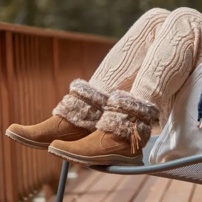 Shake up your style with a boot for snowy treks. Featuring layers of cascading faux fur accented by a braided self-suede tie, you’ll demand attention at every turn. This water repellent winter boot is ideal through the wintery months for a playful edge that goes with any outfit.