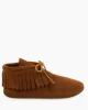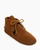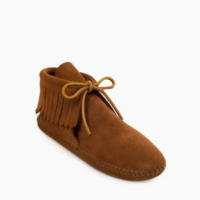 This moccasin boot hit shelves in the summer of 1967 and has been a favorite ever since. Itβs easy to see why. The traditional softsole is crafted from rich suede, wrapping your feet in comfy softness. It features our iconic fringe details and rawhide lace. Handmade from a traditional moccasin design, these timeless fringe boots will be a throwback staple for a long time to come.