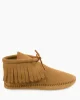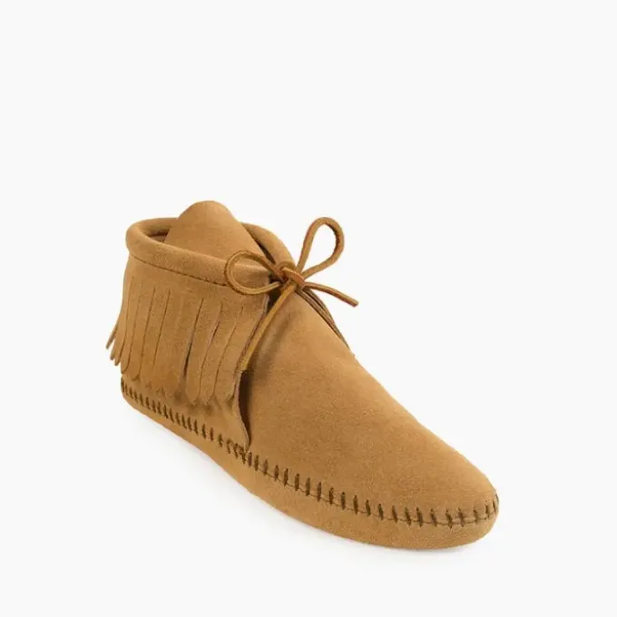 This moccasin boot hit shelves in the summer of 1967 and has been a favorite ever since. Itβs easy to see why. The traditional softsole is crafted from rich suede, wrapping your feet in comfy softness. It features our iconic fringe details and rawhide lace. Handmade from a traditional moccasin design, these timeless fringe boots will be a throwback staple for a long time to come.