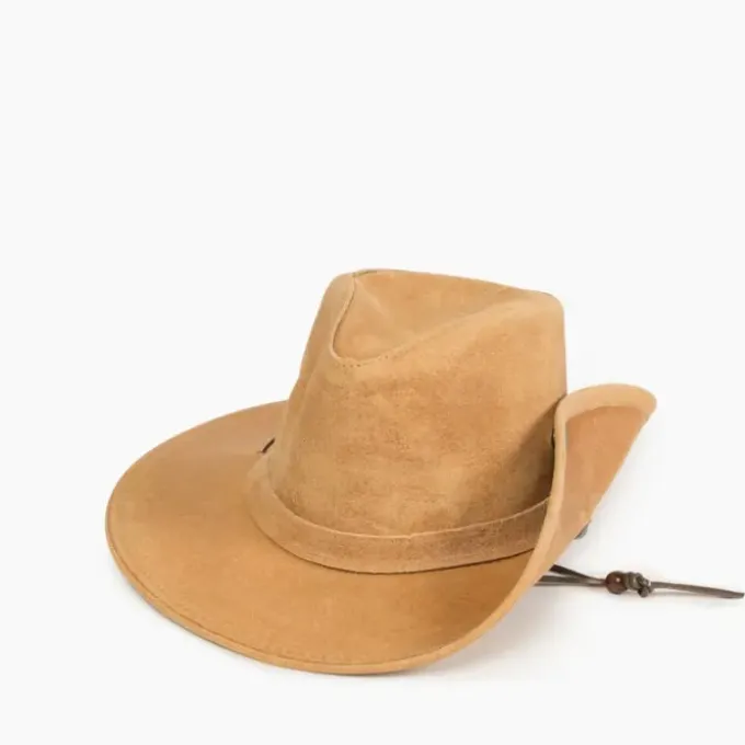 Made of durable ruff leather, this wide brimmed hat keeps you protected from everything Mother Nature has to throw at you. It’s designed with an adjustable chin strap and steel wire that’s hidden in the brim so you can shape this leather hat any way you want. A side snap gives you the option to wear the left side up or down. A perfect companion for hiking, fishing or fieldwork, this handmade hat is made to last.