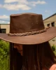 This portable leather hat folds up to fit inside your pocket or bag, so itβs easy to bring along anywhere. Designed with a specially reinforced brim, this foldable hat easily springs back to its original shape. Handmade from the highest-quality leather, this wide brimmed hat will protect you from the sun and other elements Mother Nature throws your way.