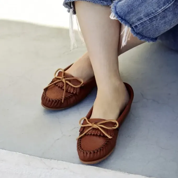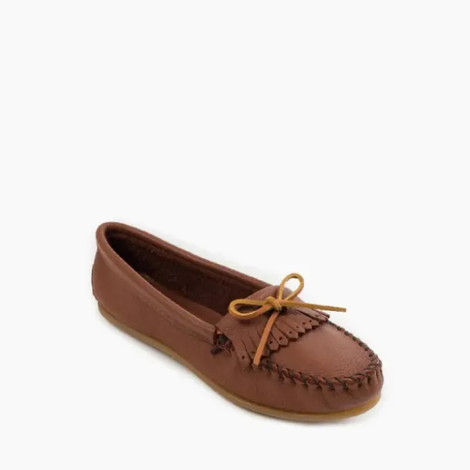 Our popular Kilty moc gets a luxe, deerskin makeover. Durable high-quality deerskin gives this moccasin its super-soft feel. Its sporty, flexible rubber sole moves comfortably with you. Hand stitching, fringe and rawhide laces complete the design that debuted in 1992.