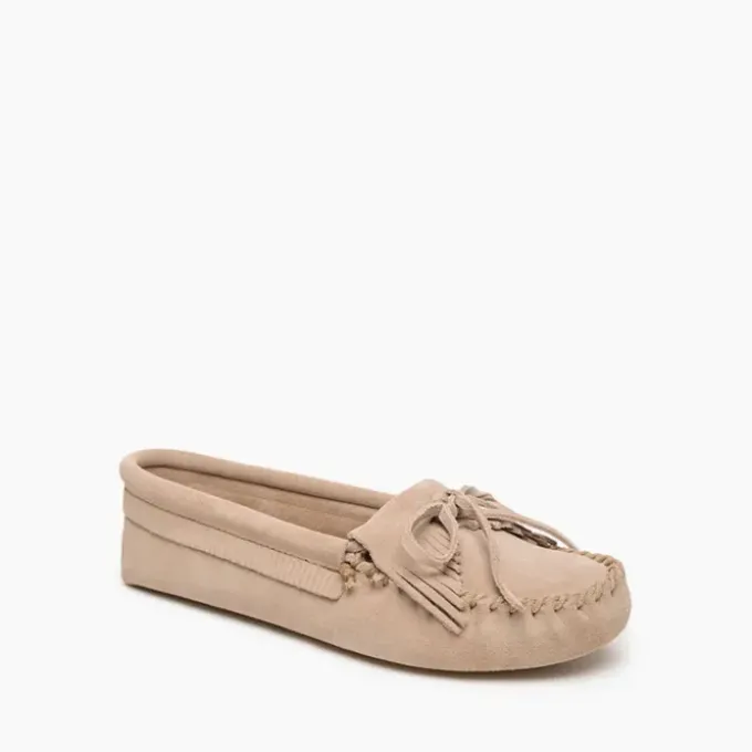 First released in 1989, our popular Kilty moccasins in the original soft sole style are the ultimate in comfortable shoes. Crafted by hand, these moccasins have an almost-barefoot feel with a dash of fringy style on top and around the collar. The highest-quality suede wraps your feet from toe to sole. This durable footwear is designed to last.