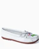 Expertly crafted with supple leather and delicate hand-beading on the toes, this exclusive collection features a vibrant floral design by Lucie Skjefte – a Minneapolis-based designer, mentor, educator, and citizen of the Red Lake Nation Anishinaabeg whose work is rooted in activism that challenges the status quo with positivity.