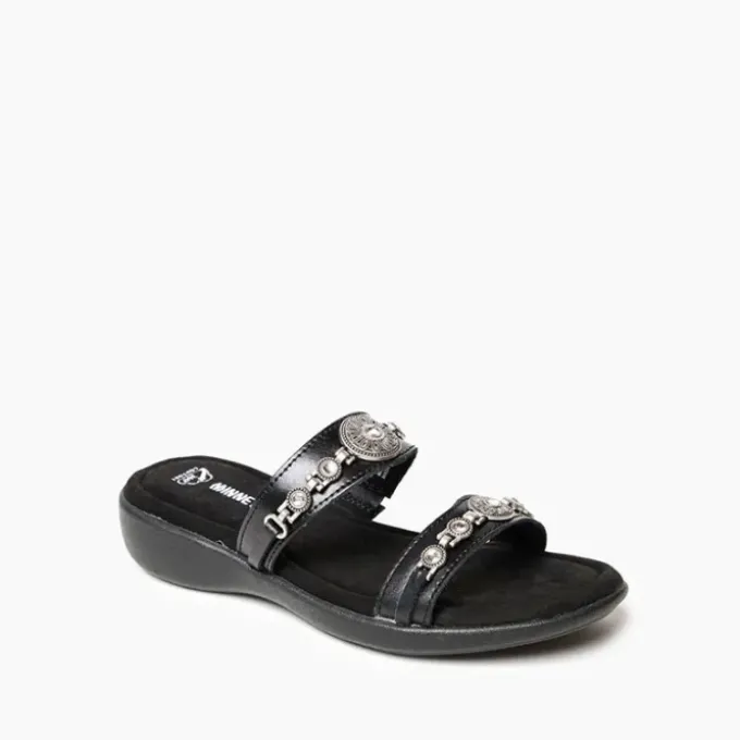 A classic slip-on silhouette with a lovely finishing touch. Featuring straps on a padded rubber sole, this style is supportive, easily wearable, and oh-so pretty. Comfort AND beauty make this embellished sandal a must-have for warm-weather wear.