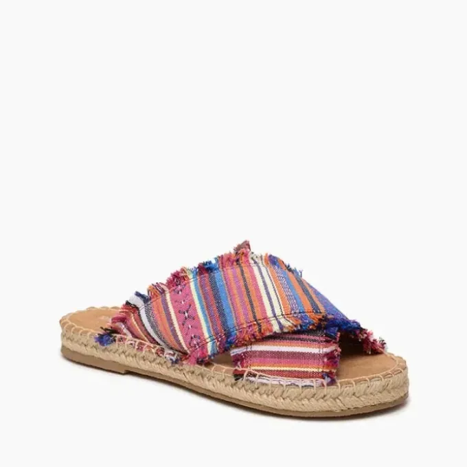 So sleek, so chic, and ready to complete your warm weather wardrobe. Featuring a comfy, frayed fabric crossband design and braided jute detail, these statement espadrille slides are the perfect finishing touch to any sunny day outfit.