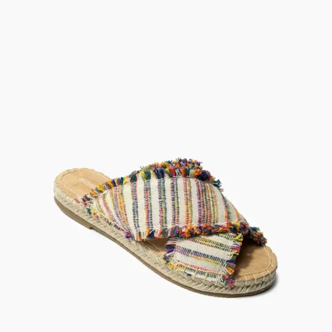 So sleek, so chic, and ready to complete your warm weather wardrobe. Featuring a comfy, frayed fabric crossband design and braided jute detail, these statement espadrille slides are the perfect finishing touch to any sunny day outfit.