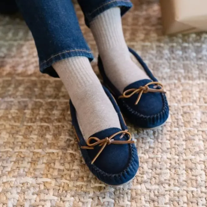 It’s good to be liked. This best-selling slipper features a classic moccasin silhouette and is handmade from genuine soft suede and plush pile lining. Choose from a variety of colors, from classic to modern. With its fun color choices, super-cozy feel and thin rubber sole, the Cally slipper is perfect wherever you need to go.
