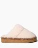 Slide into comfy cuteness. These plush slippers make a stylish statement with their distinctive patterned ribbon, all while keeping you cozy and warm with their plush pile lining.