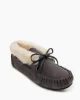 Sink into the soft pile lining that’ll keep your feet warm and comfy. These classic bootie slippers are one of our most popular styles and they make great gifts. Made by hand from genuine suede, these women’s slippers have a thin rubber sole. Leather laces tie up to keep these treats on your feet.