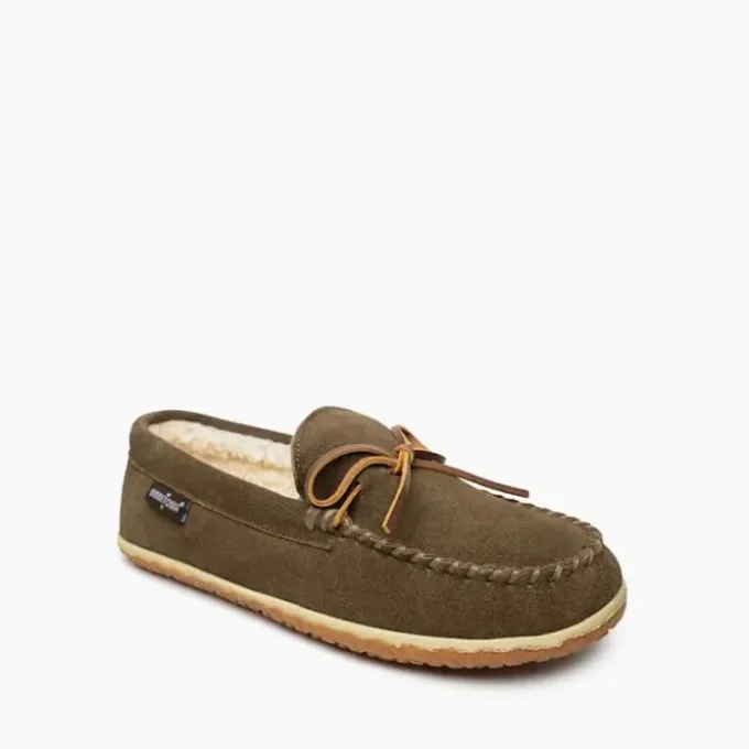 Master comfort while on-the-go or lounging the day away at home in soft genuine suede and warm berber lining. Keep comfy both indoors and out with a removable contoured footbed and heavily treaded MinnTREAD sole for traction.