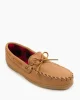 More than just house shoes, these handsome men’s moccasins will keep you comfortable all day. Soft fleece lining and genuine moosehide combine efforts to keep your feet warm. Thick moosehide is handcrafted to provide you luxe comfort. Indoor-outdoor soles mean these mocs are good to go just about anywhere.