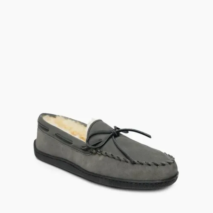 These luxurious indoor-outdoor slippers are handmade from soft sheepskin. Genuine sheepskin gives your feet warm softness while naturally wicking moisture away from your skin and allowing feet to breathe. With classic rawhide laces and a sturdy sole, you can easily take these sheepskin slippers outside on the go.