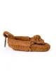 The Mini Moc Key Ring features soft suede and a Minnetonka logo footbed on this tiny takedown of our classic Kilty Moc. This Mini Moc is designed with a brushed metal split key ring and comes boxed and ready just like the Kilty Moc.