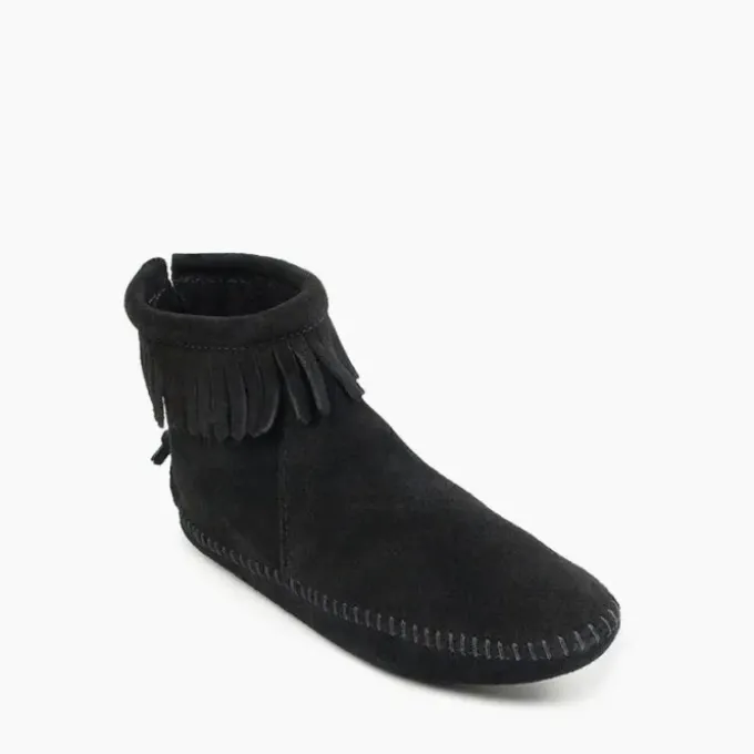 For an almost-barefoot feel, try out our popular softsole boots first released in 1963. The highest-quality suede cushions your soles and feet in velvety softness. Just enough fringe circles these ankle boots for a pop of detailing on a sleek silhouette with a back zipper that allows for easy on and off.