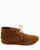 Since 1968 this moccasin boot has been a go-to favorite for those who embrace an independent spirit. This traditional softsole is crafted from rich suede, wrapping feet in softness, for an almost barefoot feel. It features our iconic fringe details and rawhide lace. Handmade from a traditional moccasin design, these timeless fringe boots are bound to be a throwback staple.