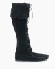 Stand out at the next festival with these iconic lace-up boots. They’re made by hand today from the same simple design that was introduced in 1968. Genuine suede is supple, soft and comfortable. These moccasin boots lace up high to just below the knee and simple fringe sways from the boot tops with every step.