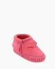 From park to play date, colorfully coordinate your Mini-me with a new suede style. This baby moccasin features a soft suede upper and sole with elasticized opening for easy on and off.