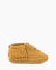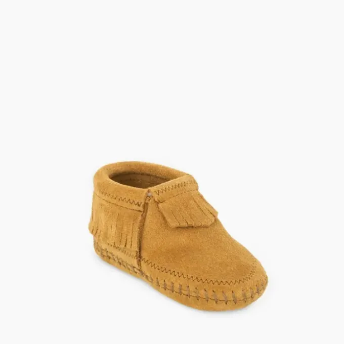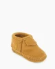From park to play date, colorfully coordinate your Mini-me with a new suede style. This baby moccasin features a soft suede upper and sole with elasticized opening for easy on and off.