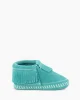 From park to play date, colorfully coordinate your Mini-me with a new suede style. This baby moccasin features a soft suede upper and sole with elasticized opening for easy on and off.