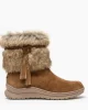 Shake up your style with a boot for snowy treks. Featuring layers of cascading faux fur accented by a braided self-suede tie, you’ll demand attention at every turn. This water repellent winter boot is ideal through the wintery months for a playful edge that goes with any outfit.