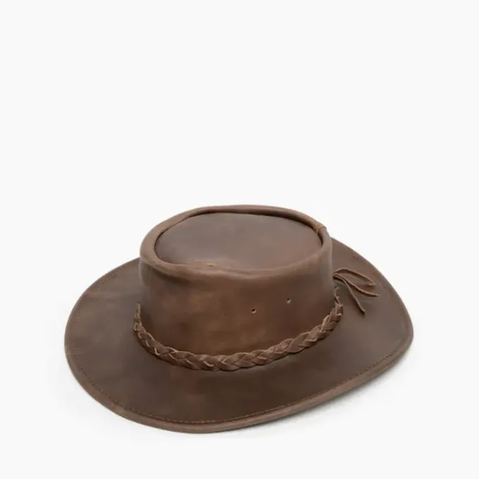 This portable leather hat folds up to fit inside your pocket or bag, so itβs easy to bring along anywhere. Designed with a specially reinforced brim, this foldable hat easily springs back to its original shape. Handmade from the highest-quality leather, this wide brimmed hat will protect you from the sun and other elements Mother Nature throws your way.