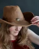 Embrace the country lifestyle with this distressed ruff leather hat. This wide brimmed hat has steel wire hidden inside the brim, which lets you shape it anyway you want. A stylish leather band, studs and metal conchos surround the western hat with a small tie in back. This durable classic keeps the sun out and is handmade to last.