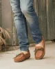 This durable men’s moccasin defines the distinct, relaxed lifestyle. Soft and supple suede cushions the feet along with lightweight and flexible rubber soles. These comfortable loafers are made by hand for a unique style that will make you stand out from the crowd.