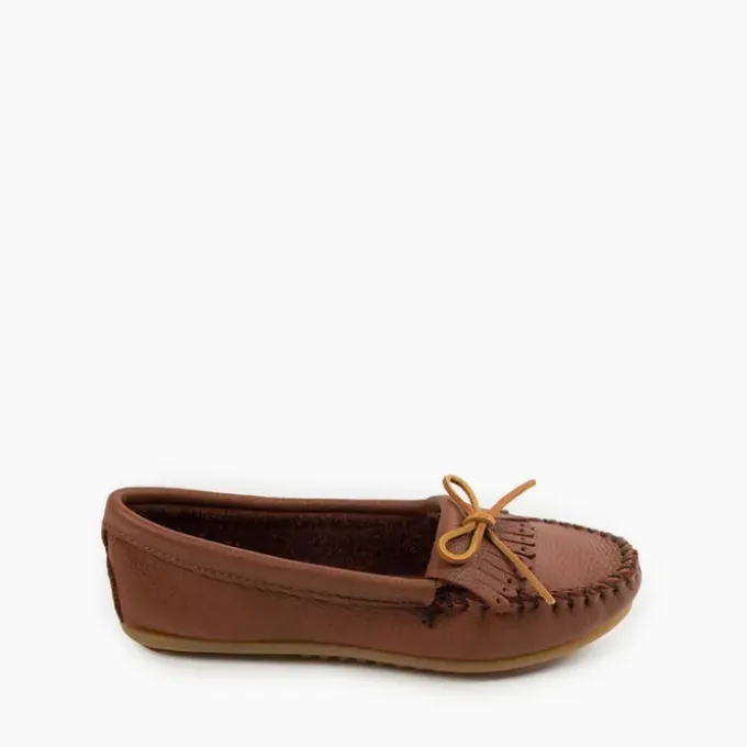 Our popular Kilty moc gets a luxe, deerskin makeover. Durable high-quality deerskin gives this moccasin its super-soft feel. Its sporty, flexible rubber sole moves comfortably with you. Hand stitching, fringe and rawhide laces complete the design that debuted in 1992.