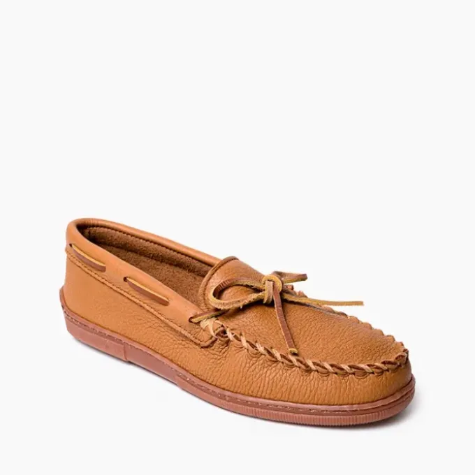 Combine the stylish, timeless design of a loafer with the durable construction of thick and genuine moosehide and you get these incredible moccasins. Soft and supple moosehide provides a super comfortable feel. A lightweight rubber sole gives these menβs moccasins just enough flex. Perfect with khakis for the office or shorts or jeans for a more casual look, these versatile moccasins will be a go-to favorite for a long time to come.