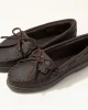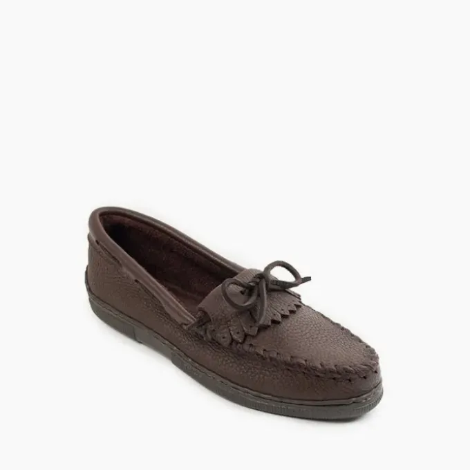 These sturdy loafers are handmade from the highest-quality moosehide, so they’re designed to last and last. Super-soft moosehide, a flexible rubber sole and fully padded insole make these flat shoes ultra comfortable and perfect for completing any casual look. Kilty fringe, hand-stitched toe details and rawhide ties finish these durable women’s shoes.