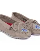 The Wicanh’pi Moc features Afton Josette Delgado’s star-inspired floral design, honoring the creation story of the Očéti Šakowin. Made with genuine suede and Minnetonka’s signature hand-stitched detailing, this moccasin blends timeless craftsmanship with cultural storytelling.