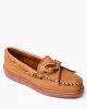 Handmade from soft, genuine moosehide these high-quality women’s shoes are durable and long lasting. Slip on a pair of these comfortable boat shoe-inspired designs and you might never take them off.