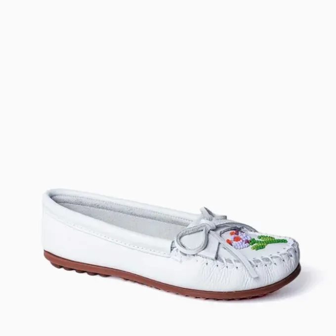 Expertly crafted with supple leather and delicate hand-beading on the toes, this exclusive collection features a vibrant floral design by Lucie Skjefte – a Minneapolis-based designer, mentor, educator, and citizen of the Red Lake Nation Anishinaabeg whose work is rooted in activism that challenges the status quo with positivity.