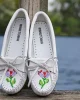 Expertly crafted with supple leather and delicate hand-beading on the toes, this exclusive collection features a vibrant floral design by Lucie Skjefte – a Minneapolis-based designer, mentor, educator, and citizen of the Red Lake Nation Anishinaabeg whose work is rooted in activism that challenges the status quo with positivity.