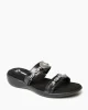 A classic slip-on silhouette with a lovely finishing touch. Featuring straps on a padded rubber sole, this style is supportive, easily wearable, and oh-so pretty. Comfort AND beauty make this embellished sandal a must-have for warm-weather wear.
