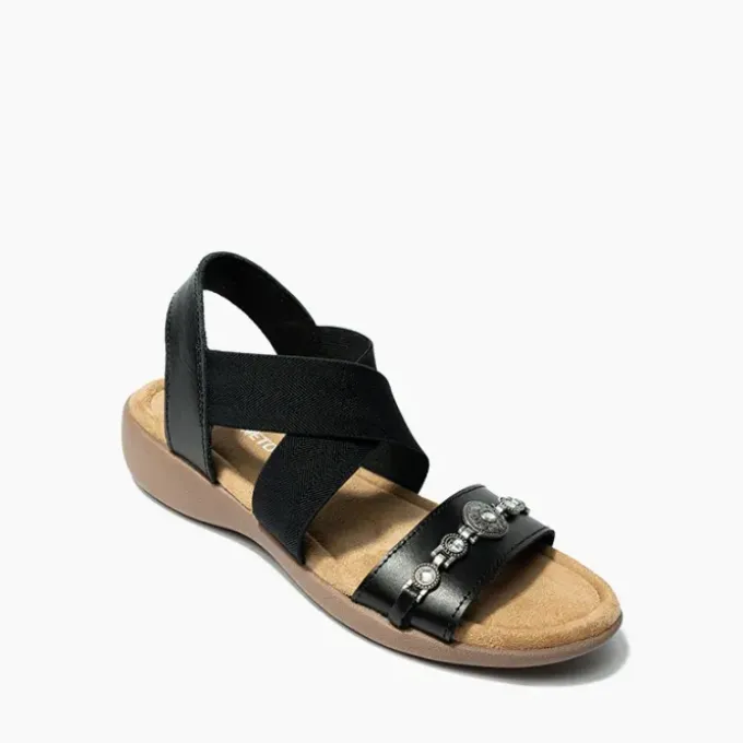 Get ready to love your new go-to sandals! Step into a blend of comfort and style with these multi-strap sandals with a touch of glam. The elastic straps move with you for a flexible, secure fit, while the soft memory foam footbed keeps your feet cushioned all day long.