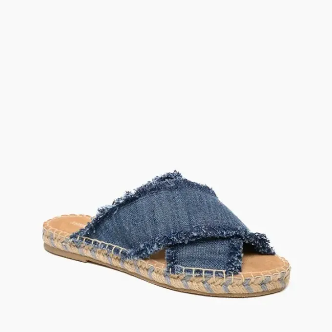 So sleek, so chic, and ready to complete your warm weather wardrobe. Featuring a comfy, frayed fabric crossband design and braided jute detail, these statement espadrille slides are the perfect finishing touch to any sunny day outfit.