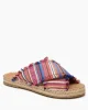 So sleek, so chic, and ready to complete your warm weather wardrobe. Featuring a comfy, frayed fabric crossband design and braided jute detail, these statement espadrille slides are the perfect finishing touch to any sunny day outfit.