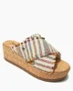 Elevate your warm weather wardrobe with these adorable slip on sandals. Featuring a comfy, frayed fabric crossband and a trendy wedge bottom, these statement platform slides are the perfect complement to your sunny day ensemble.