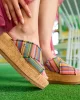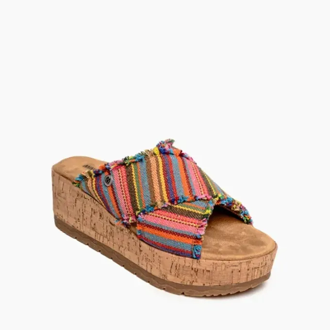 Elevate your warm weather wardrobe with these adorable slip on sandals. Featuring a comfy, frayed fabric crossband and a trendy wedge bottom, these statement platform slides are the perfect complement to your sunny day ensemble.
